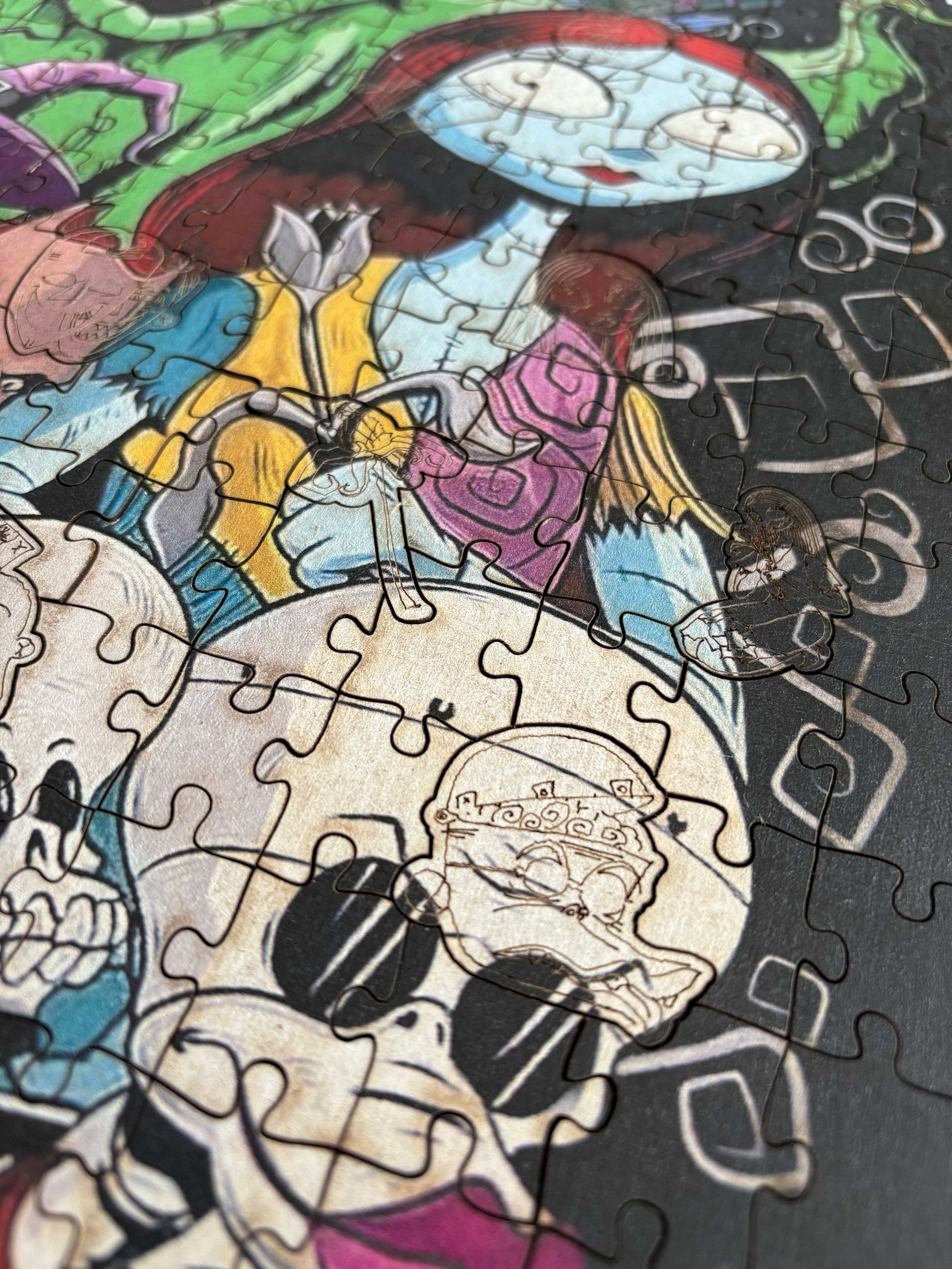 Sumérgete en el mundo mágico y oscuro de Halloween Town con este rompecabezas exclusivo de edición artística. Su diseño vibrante reúne a los personajes más queridos y extravagantes en una composición llena de detalles, color y personalidad.