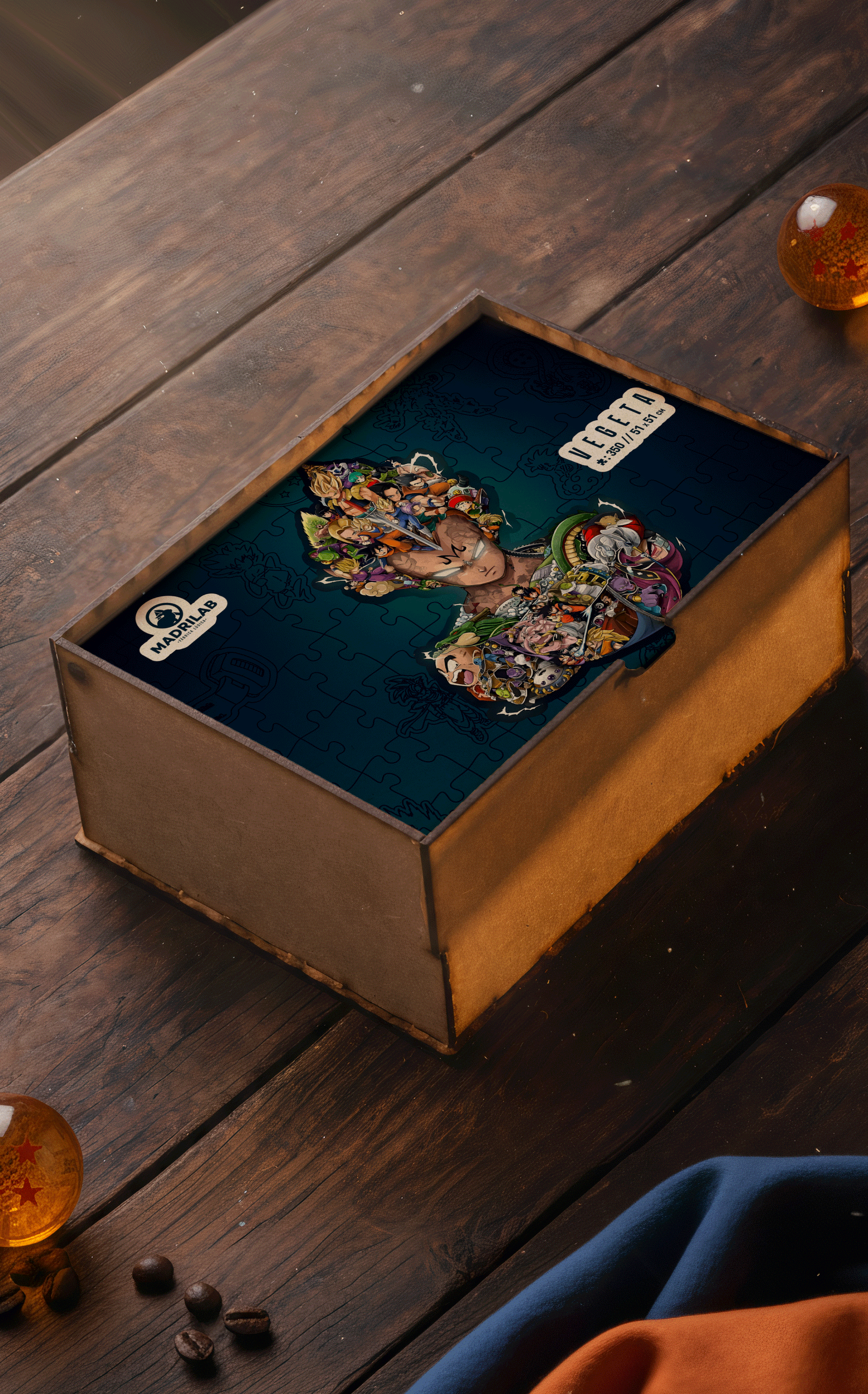 Este rompecabezas exclusivo rinde homenaje a una de las etapas más icónicas del universo de Dragon Ball: Vegeta en su transformación Majin. Cada pieza revela una composición vibrante llena de héroes y villanos de la saga, creando una obra llena de energía, nostalgia y detalle.
